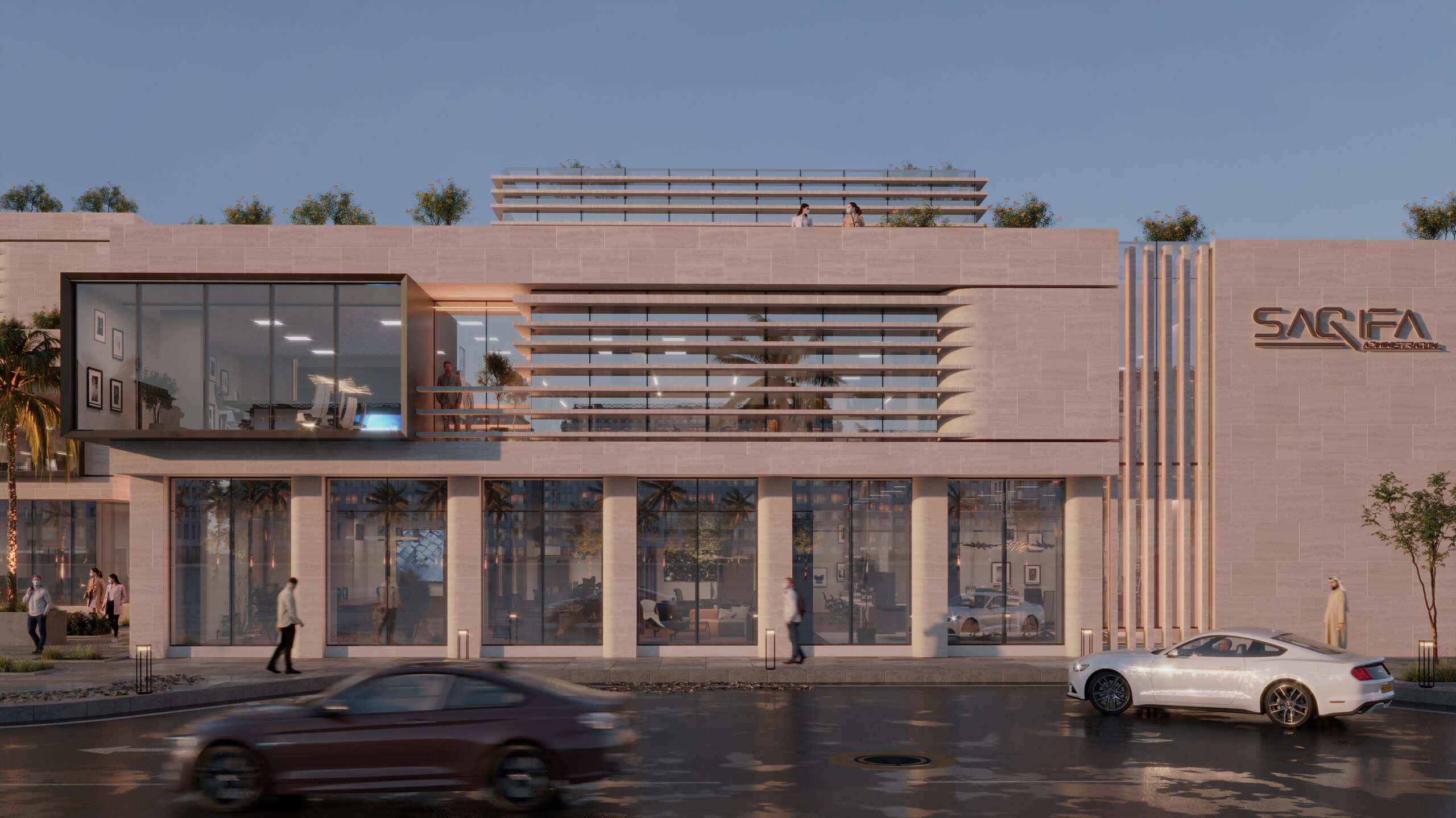 Saqifa is a contemporary administrative facility in Riyadh, crafted to support businesses and professional services. The design emphasizes functional workspaces that enhance productivity, using premium materials and energy-efficient features throughout.